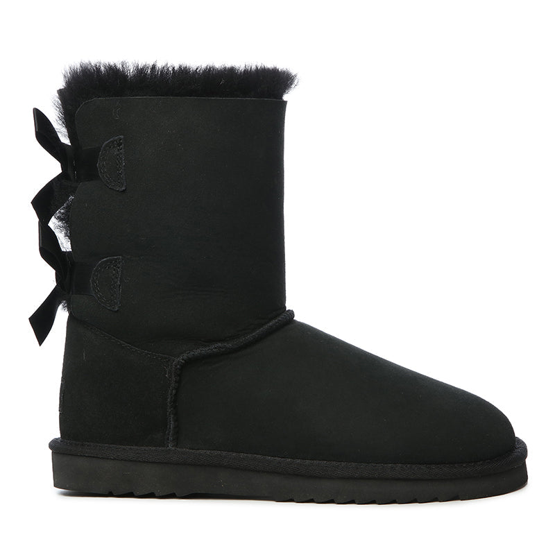 Step into winter like the showstopper you are with the UGG Premium Short Bow Boots from UGGSAE. These leather beauties are the perfect fusion of warmth, luxury, and a touch of sass. With soft sheepskin lining keeping your toes toasty, and playful double bows on the back giving your look that extra pop of flair, you'll be turning heads from the snowy streets to après-ski lounges. Perfect for pairing with your coziest knits, these boots are proof that winter style can be fun, flirty, and oh-so-fabulous! Bow down to comfort and chicness.